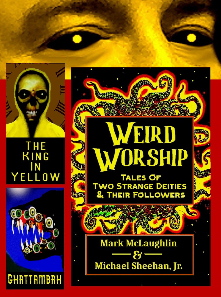 WEIRD WORSHIP presents 14 tales and a poem about two strange deities who are part of the Cthulhu Mythos — the insect-god Ghattambah, and the King in Yellow. Ghattambah was created by writer Mark McLaughlin, who also writes stories about the creature with his collaborator Michael Sheehan, Jr. The King in Yellow first appeared in the Robert W. Chambers book of the same name in 1895. The royal terror has been a source of inspiration for many writers who embrace the Cthulhu Mythos.